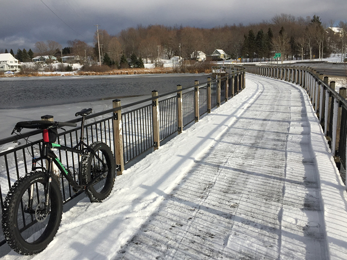 10/14/2021 2:28 PM 270137 snow_covered_trail_with_fat_tire_bike_parked_against_fence.jpg