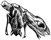 The silver-haired bat lives in forested areas near streams and lakes. Similar in size to the red bat, the silver-haired species is black or dark brown with silver on the tips of its hairs. Considered scarce throughout their statewide range, the silver-haired bat is most easily identified by its slow flight, which is typically low to the ground. A solitary species, females are thought to establish nursing colonies in June and July when they give birth to two young. A southern migrant, the silver-haired is preyed upon by skunks and great-horned owls.