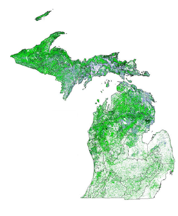Dynamic Forests are the “working forests” of Michigan; those that are managed for a forest objective typically related to forest products, biodiversity, wildlife habitat, or recreation. Forestry practices employed to achieve these objectives include timber harvest, cultivation, tree planting and prescribed fire. When implemented under sustainable harvest guidelines and using best management practices, forest management can promote structural and species diversity, increase forest productivity, and improve forest health and resilience. Moreover, it can mitigate impacts of invasive species, disease, and environmental change. These actively managed forests represent a diverse range of forest types, structures, ages, and successional stages that are in flux at various scales across the landscape. They are integral to the state’s ecological framework, as well-managed forests provide a host of ecosystem services including nutrient cycling, water regulation and quality, soil quality, and carbon storage. They provide habitat for common and rare plants and wildlife species and contribute to the economy through sustainable timber production and recreation. Sound forest management balances these ecological, social and economic values, the three tenets of forest sustainability.